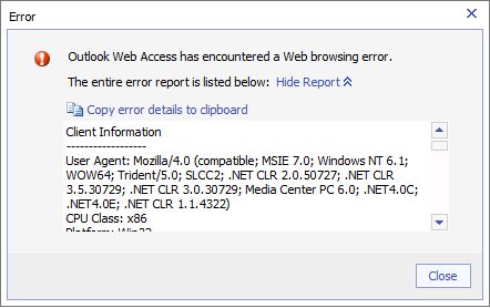 Outlook Web Access has encountered a Web browsing error when trying to access email via Exchange OWA.Expanded info: